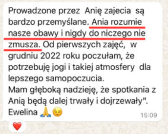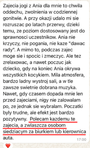 Stworzyłam ten kurs jako instruktorka jogi ale po wielu latach praktyki oraz pracy z ludźmi na macie. To wynik lat edukacji, setek godzin spędzonych na pracy z własnym ciałem i testowaniem skutecznych rozwiązań.