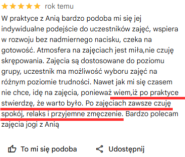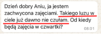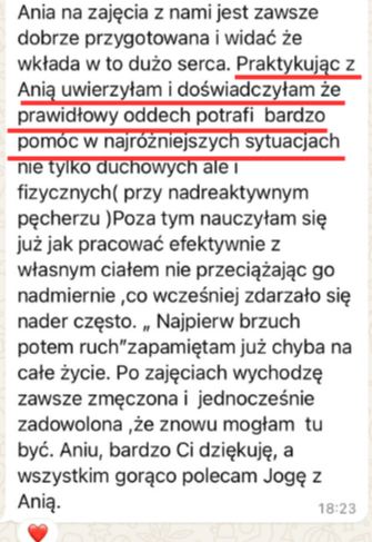 Dzięki temu Ty dostajesz gotową metodę – bez przeszukiwania internetu, bez frustracji, bez ryzyka. Metodę, która jest skuteczna, bo nauczysz się pracować z własnym ciałem i oddechem w świadomy sposób.